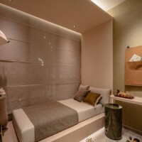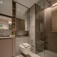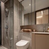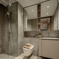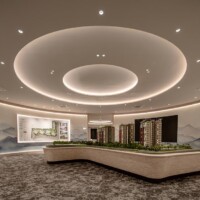 The design goes beyond illumination. Strategic layers of light highlight materials, textures, and interior details, allowing potential homeowners to imagine how these spaces could feel in daily life. Instead of simply presenting floor plans and finishes, the gallery immerses people in atmosphere.