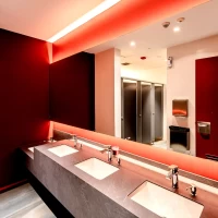 The resulting design uses a blend of linear downlights and wall washers to create dimensionality and rhythm throughout the interior. A 3000K warm white palette harmonises with the venue’s dominant tones, rich reds and bronzes, enhancing intimacy and flow. Carefully layered lighting levels help craft visual narratives that invite patrons to connect, linger, and converse in a refined yet emotionally resonant setting.